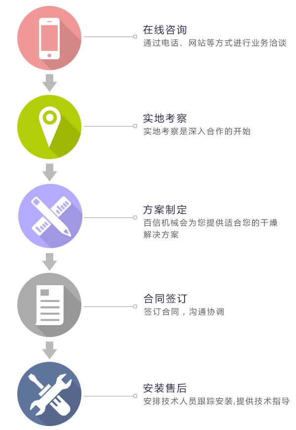 《江洲區(qū)食品藥材烘干設備網(wǎng)帶烘干機----百信設備》?合作流程: