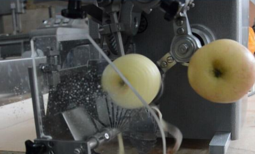 3、去皮:可使用去皮機(jī)(也可人工)均勻地消去蘋(píng)果表皮,剔除有裂縫、有斑點(diǎn)的部位;