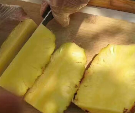 菠蘿切片的過程,烘干前期切片可以切圓片,或者半圓片都可以,主要看產(chǎn)品要求。