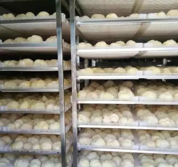 - 猴頭菇干燥過程中,濕度的管理主要靠調(diào)節(jié)進風(fēng)口和排氣口的大小來實現(xiàn)的。初期猴頭菇蒸發(fā)出來的大量水分,在烘房內(nèi)形成較多的熱空氣,必須及時排出,這時應(yīng)將進風(fēng)口、新風(fēng)閥全部打開,使烘房內(nèi)濕熱空氣從排氣口排出,外界新鮮空氣從進風(fēng)口吸入。隨著烘烤時間的延長,到第4-5階段,猴頭菇中的水分因蒸發(fā)而逐漸減少,因而也應(yīng)相應(yīng)地關(guān)小進風(fēng)口和新風(fēng)閥。至干制結(jié)束前的1~2小時內(nèi),應(yīng)將進風(fēng)口、排氣就全部關(guān)閉。
