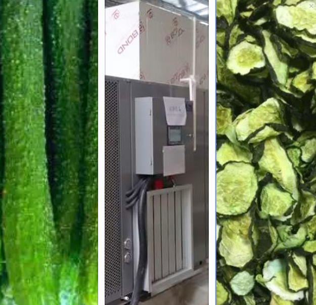 1:空氣能黃瓜片烘干機(jī)(主機(jī)有5~75度智能控溫、可調(diào)性智能新風(fēng)除濕、冷凝除濕等功能)